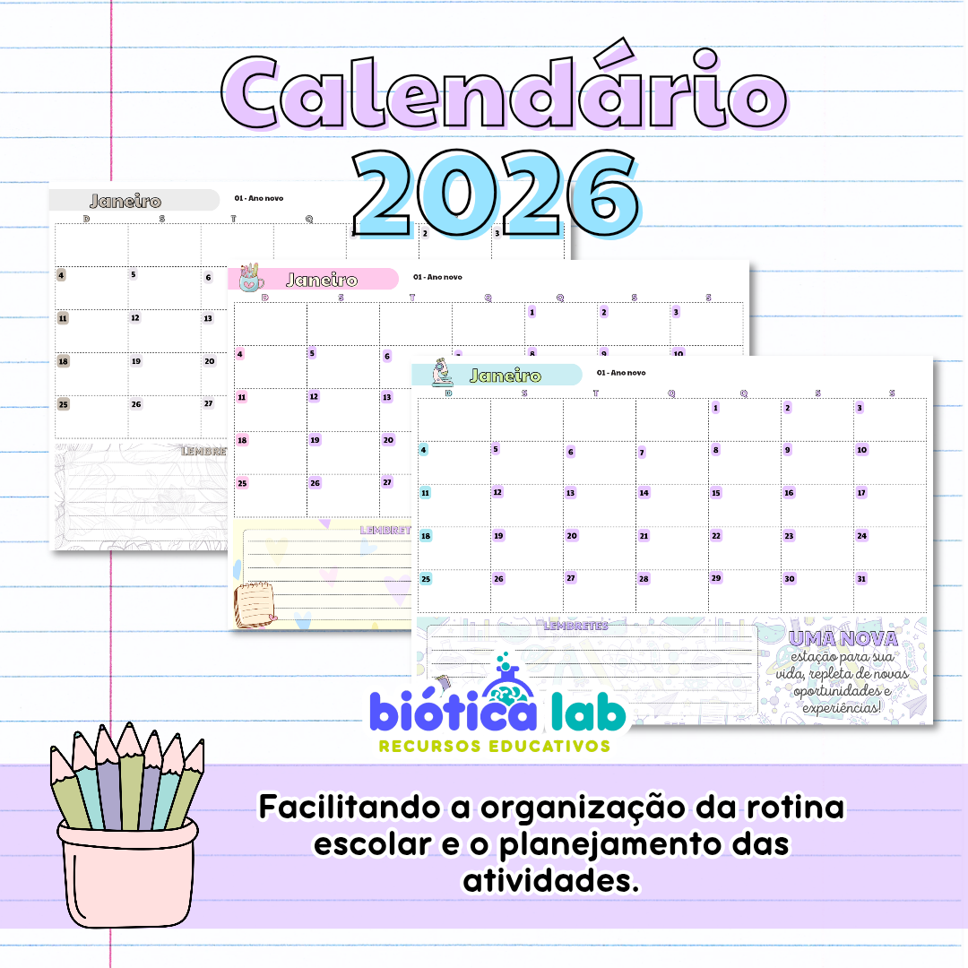🎯 Ideal para professores, coordenadores e gestores escolares que buscam um calendário pedagógico 2026 prático, organizado e eficiente.