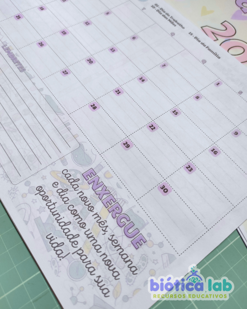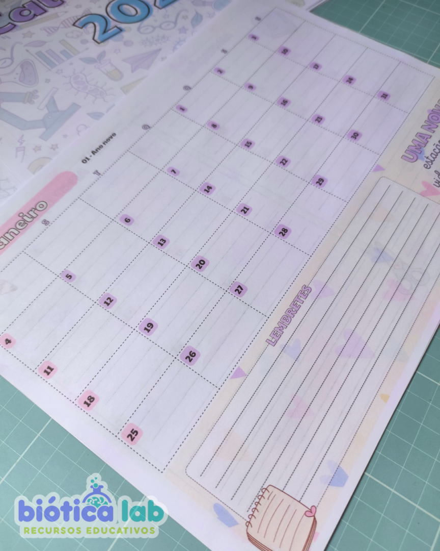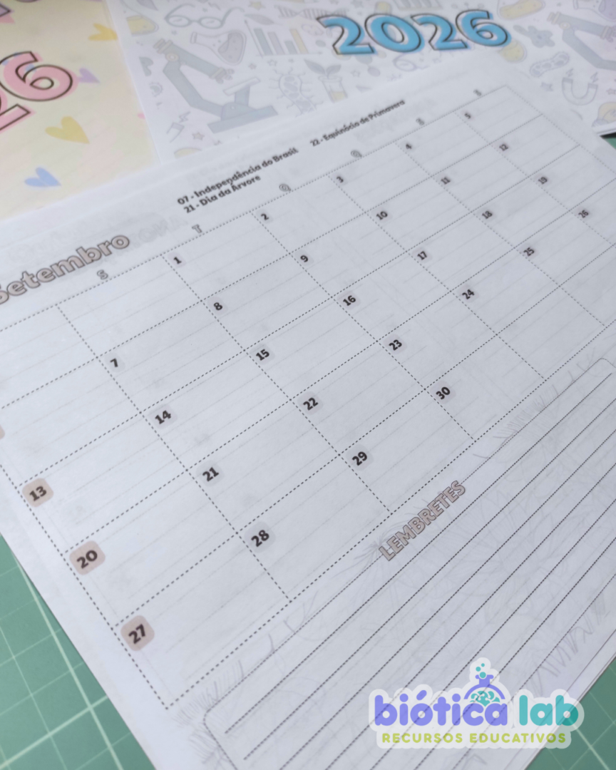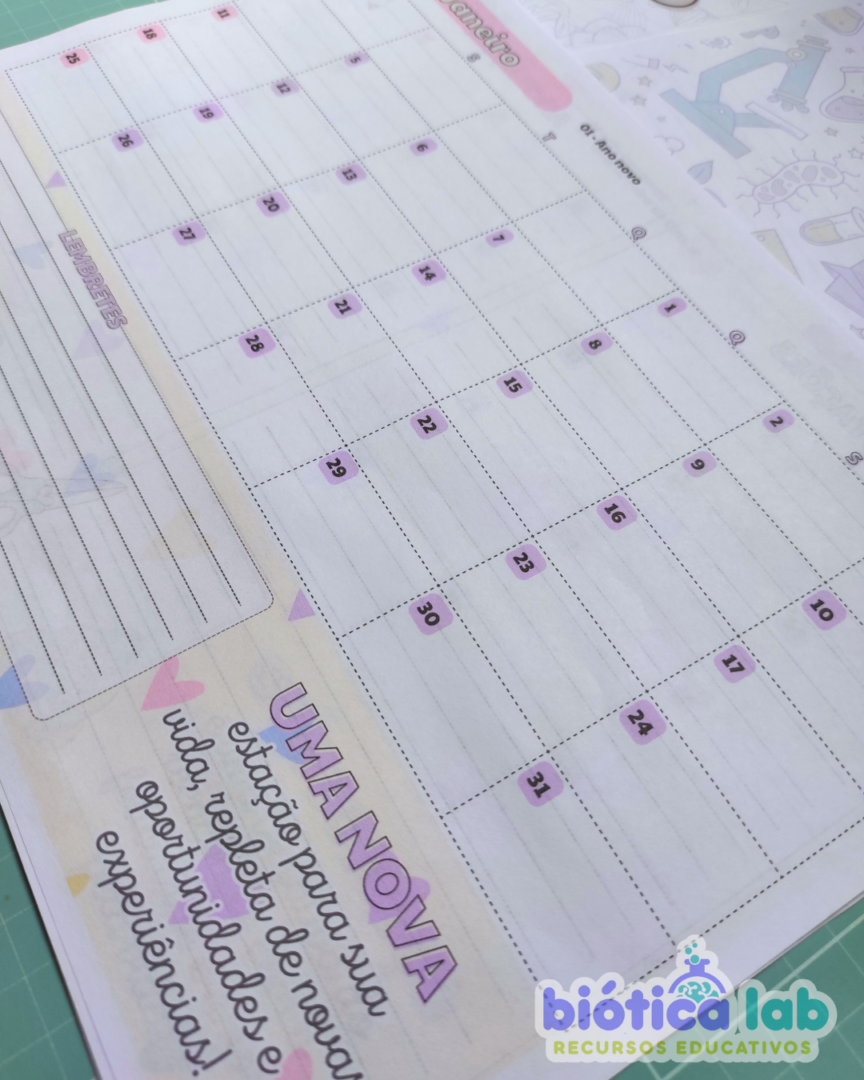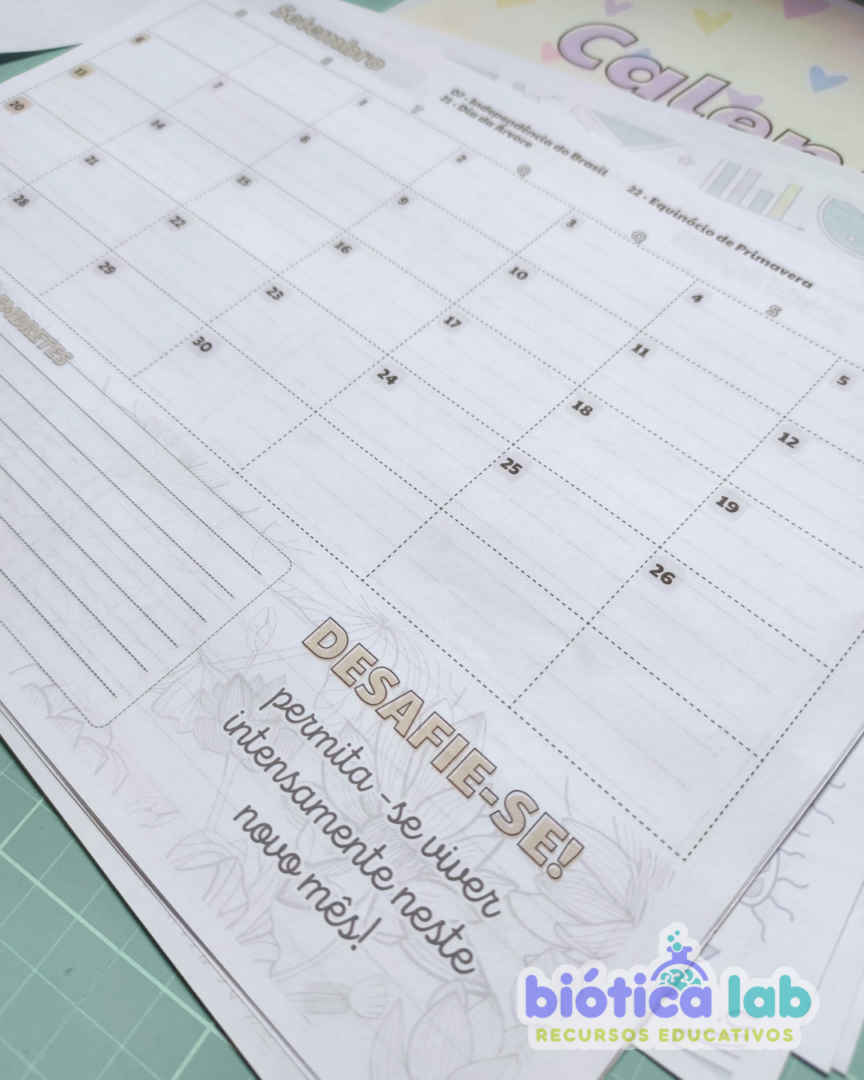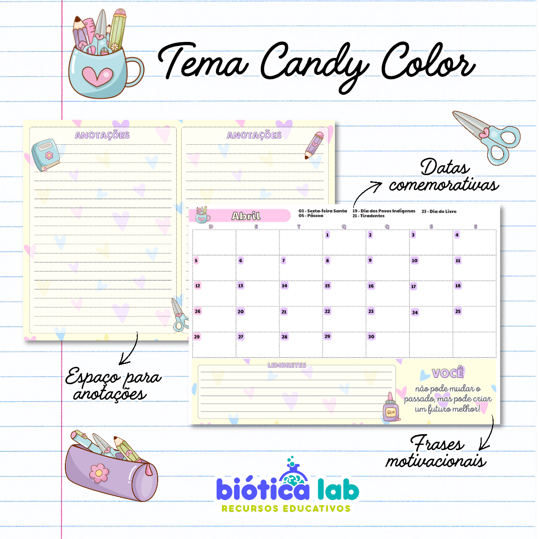 ✔ 3 temas de calendários: candy color, ciências e neutro