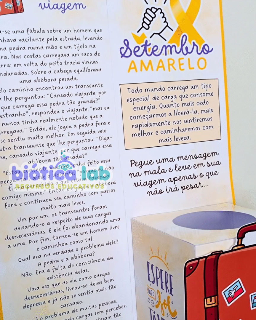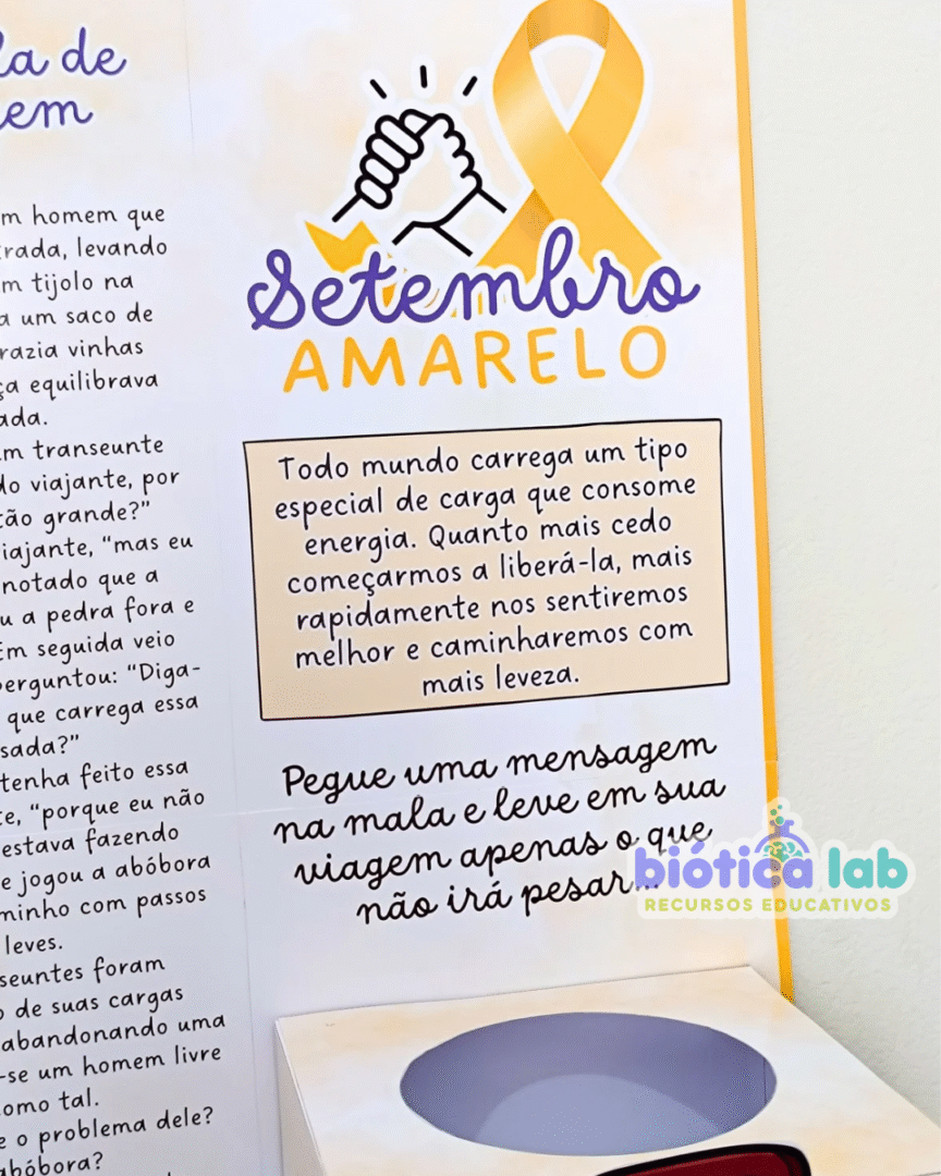 No final, um cartaz coletivo e uma caixa de malas personalizadas 🧩 se tornam símbolos visíveis de união, acolhimento e valorização da vida.